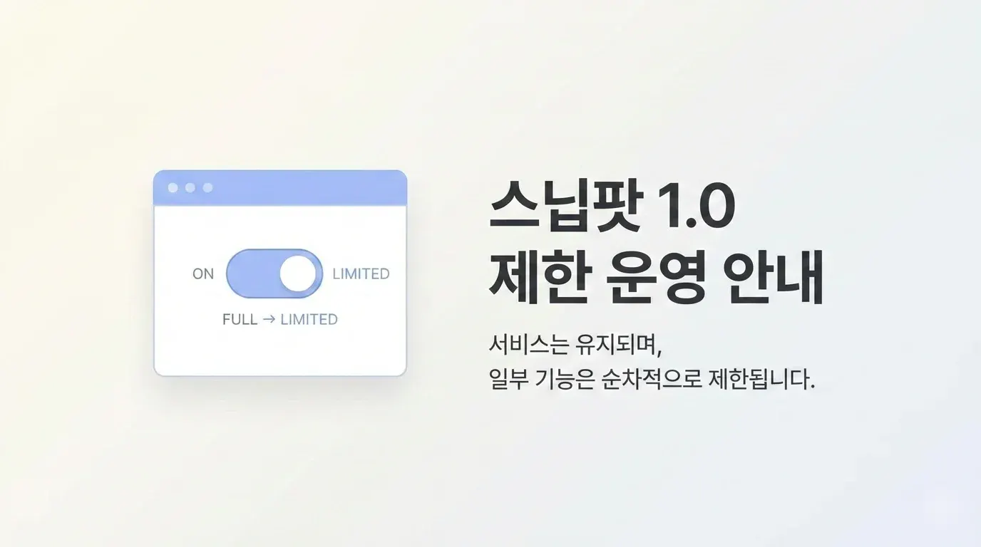이에 따라 스닙 콘텐츠 포스팅이 점진적으로 제한되며, iOS/Android 앱 지원은 종료됩니다.