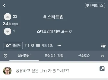 평소 관심있는 #스타트업 팟 발견, 팔로우!