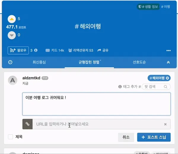 스닙팟에서는 #해시태그가 곧 게시판입니다.