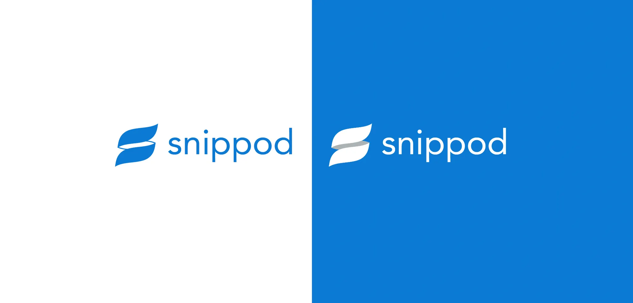 스닙팟 로고는 긴 끈이 휘어지며 ‘S’ 형태를 띈 심볼과 글자 (’snippod’ 혹은 ‘스닙팟’)로 된 워드마크가 결합된 로고를 사용합니다. 배경이 흰색 형태에서는 파란색 컬러 (스닙팟 블루) 를 사용하며, 배경이 어두울때는 흰색 계열을 사용합니다. 어두운 배경은 되도록 파란색 컬러 (스닙팟 블루) 를 권장합니다.